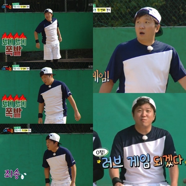특히 이날 정형돈은 성시경과 함께 한 게임에서 목동팀에 자꾸 점수를 내주는 모습을 보였다. 심판의 판정에 뒤끝을 보이는 등 유독 승리에 목말라하던 정형돈은 팽팽한 랠리를 이어가며 손에 땀을 쥐게 했지만, 결국 점수를 내주자 분노가 폭발해 라켓을 바닥에 집어던지는 모습을 보였다. 이는 분명히 테니스 코트 안의 비매너.
