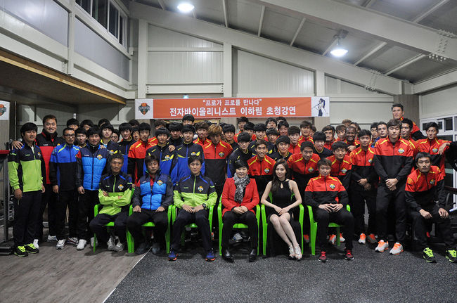 34R 대구전 패배의 아픔을 딛고 거둔 승리였기에 기쁨은 더욱 남달랐다. 사실 사생결단 매치인 안양전을 앞두고 준비과정에서 선수단이 보여준 집중력과 긴장감은 살벌 그 자체였다. 이를 지켜보던 임은주 대표이사는 “심기일전을 외치는 선수단에 힐링이 필요하다”는 의견을 제시했고, ‘프로가 프로를 만나다’라는 주제의 특별행사가 탄생하게 됐다. 물론 깜짝 이벤트를 겸한 행사였기에 모든 것은 선수단 모르게 007작전으로 진행됐다.