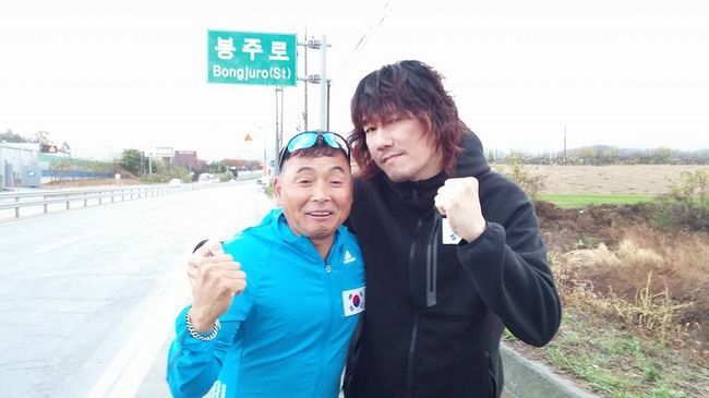 가수 김장훈이 전 마라톤 선수 이봉주와 봉주로를 완주했다.