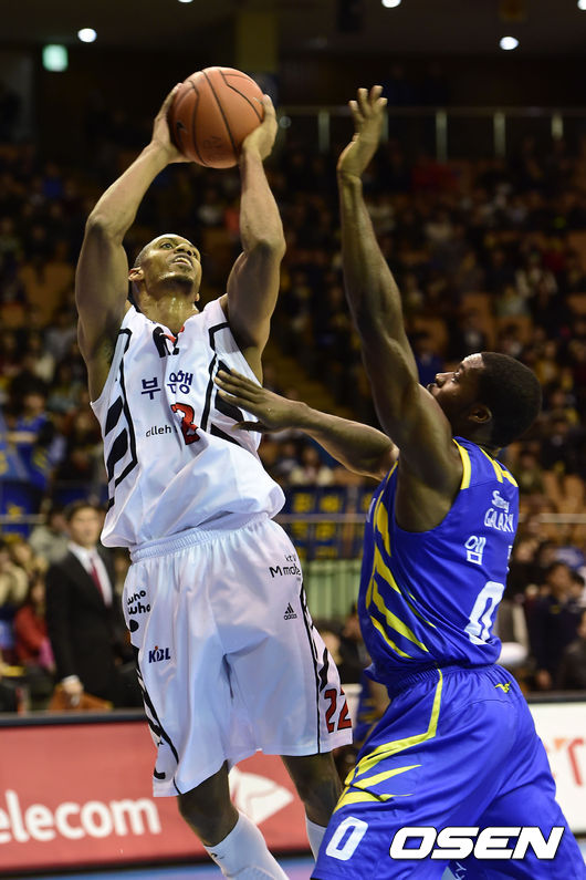 12일 오후 서울 잠실실내체육관에서 열린 삼성 썬더스와 KT 소닉붐의 경기, 2쿼터 KT 브락이 삼성 엠핑의 수비를 뚫고 슛을 시도하고 있다.