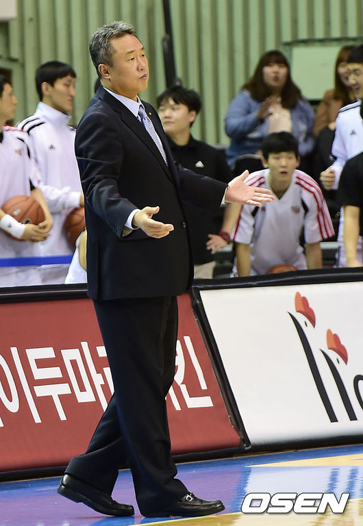 12일 오후 서울 잠실실내체육관에서 열린 삼성 썬더스와 KT 소닉붐의 경기, 2쿼터 KT 전창진 감독이 작전 지시를 하고 있다.