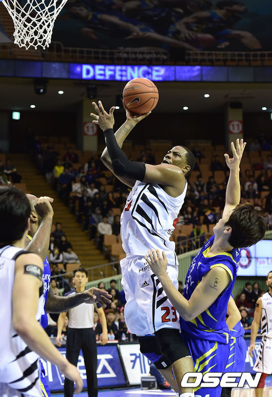 12일 오후 서울 잠실실내체육관에서 열린 삼성 썬더스와 KT 소닉붐의 경기, 2쿼터 KT 로드가 슛을 시도하고 있다.