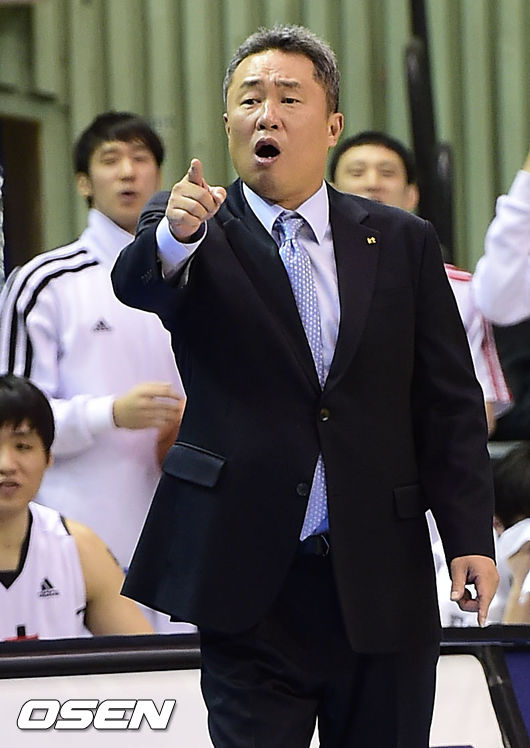 12일 오후 서울 잠실실내체육관에서 열린 삼성 썬더스와 KT 소닉붐의 경기, 2쿼터 KT 전창진 감독이 작전 지시를 하고 있다.