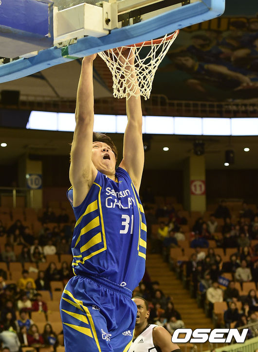 12일 오후 서울 잠실실내체육관에서 열린 삼성 썬더스와 KT 소닉붐의 경기, 3쿼터 삼성 김준일이 덩크슛을 성공시키고 있다.