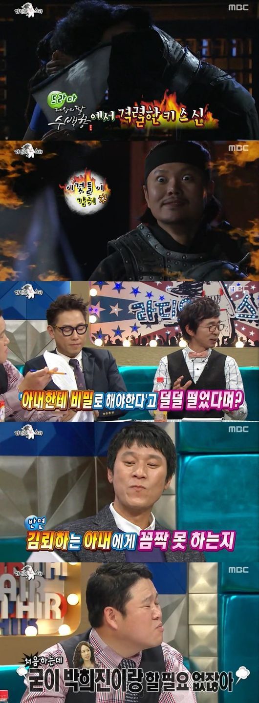 이에 MC들은 드라마 ‘제왕의 딸 수백향’에서 찍은 김뢰하와 박희진의 키스신을 언급, “아내에게 비밀로 해야 한다고 덜덜 떨었다던데 사실이냐”고 확인했다.