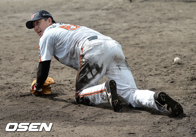 한화 김성근(72) 감독도 놀랐다. 내야수 김회성(29) 때문이었다. 일본 오키나와에서 마무리 캠프를 지휘하고 있는 김 감독은 어느 때보다 뜨거운 열정으로 훈련하는 김회성을 눈여겨보고 있다. 수비 펑고는 물론 토스 배팅까지 1대1 집중훈련으로 김회성을 아주 강하게 조련하고 있는 것이다.