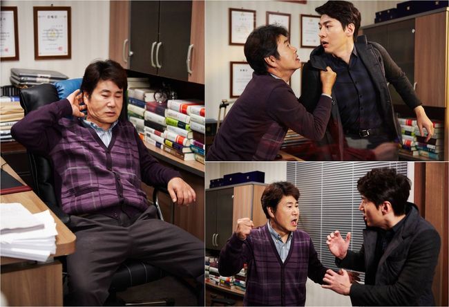 KBS 2TV주말드라마 ‘가족끼리 왜 이래’(극본 강은경,연출 전창근,제작(주)삼화네트웍스) 측은 13일 유동근(차순봉 역)이 송재희(변우탁 역)의 멱살을 잡으며 분노를 터뜨리고 있는 장면을 공개했다.