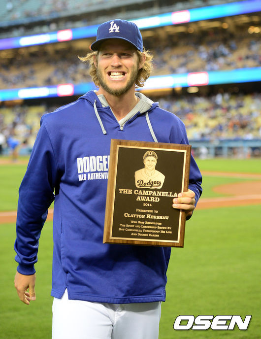 [OSEN=LA(미국 캘리포니아주), 박승현 특파원]LA 다저스 에이스 클레이튼 커쇼가 만장일치로 2014 내셔널리그 사이영상 수상자로 선정됐다. 메이저리그 7시즌경력, 최근 4년 동안 3번째 수상이다.