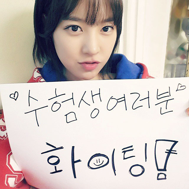 진세연은 지난 12일 자신의 인스타그램을 통해 사진을 공개하며 진심으로 행운을 기원했다. 사진 속 진세연은 하얀 도화지 위에 '수험생 여러분 파이팅!'이라고 적은 피켓을 든 채 카메라를 바라보고 있다.