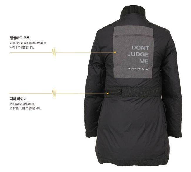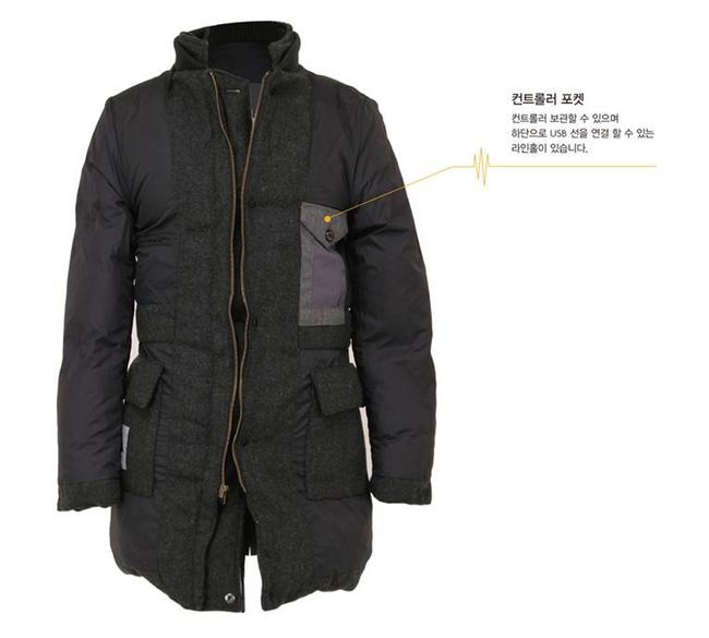 면상 발열체와 케이블로 연결되어 전력을 공급하는 포켓 수납형 컨트롤러는 면상 발열체의 온도를 1분 이내에 최대 52도까지 조절할 수 있어, 외출하면서 바로 따뜻한 외투를 입을 수 있다. 컨트롤러 내부에 내장되어 있는 센서는 자동으로 온도를 감지해 일정 온도에서 전력 소모를 억제하여 과열의 위험을 방지한다. 반면 전자파는 일반 스마트폰 대비 1% 미만으로 발생해 전자파 위험 요소를 최소화 했다. 또한 컨트롤러에는 뛰어난 안정성의 일본 Panasonic사 셀을 채용했으며, 스마트폰을 충전하는 보조 배터리로도 활용이 가능하다.