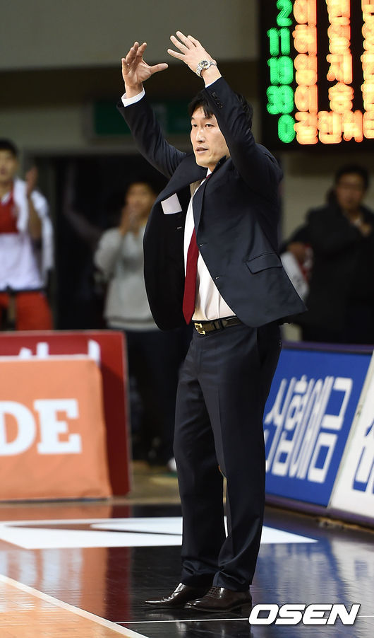 1쿼터 KGC 이동남 감독이 작전을 지시하고 있다.