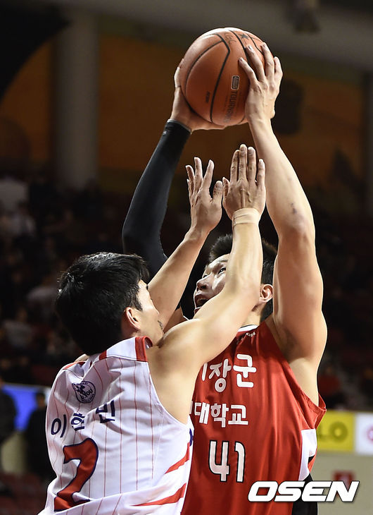 1쿼터 KGC 오세근이 슛을 시도하고 있다.