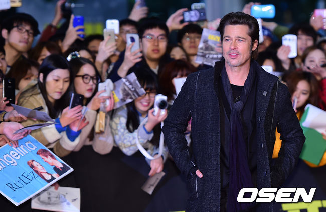 할리우드 배우 브래드 피트와 로건 레먼이 영화 '퓨리' 홍보차 한국을 찾아 팬들을 만났다.