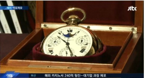 이 시계는 1933년 스위스의 파텍필립사가 만든 수제 황금 회중시계로, 낙찰가가 2398만 달러 한화 (263억 2000만 원)이다. 이 금액은 15년 만에 세계 시계 경매 사상 최고가격을 갈아치운 것으로 알려졌다.