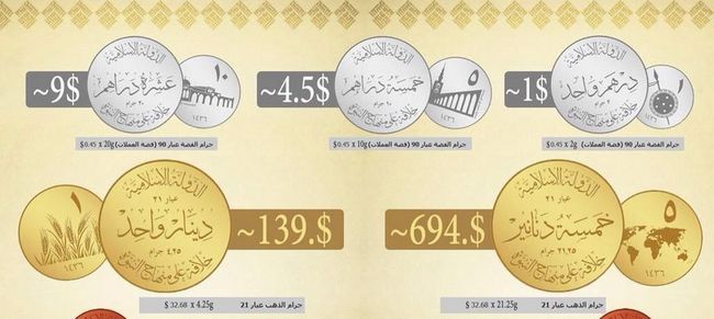 IS 자체 화폐의 한쪽 면에는 '이슬람국가'와 '선지자를 따르는 칼리프 영토'라는 문구와 함께 액면가가 새겨지고, 반대면에는 다양한 상징이 들어갈 예정이다.