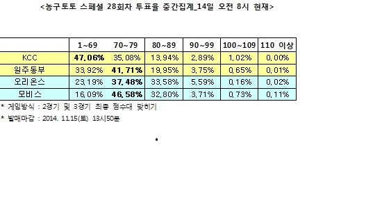 2014-15시즌 KBL 2경기 대상 농구토토 스페셜 28회차 투표율 중간집계 결과
