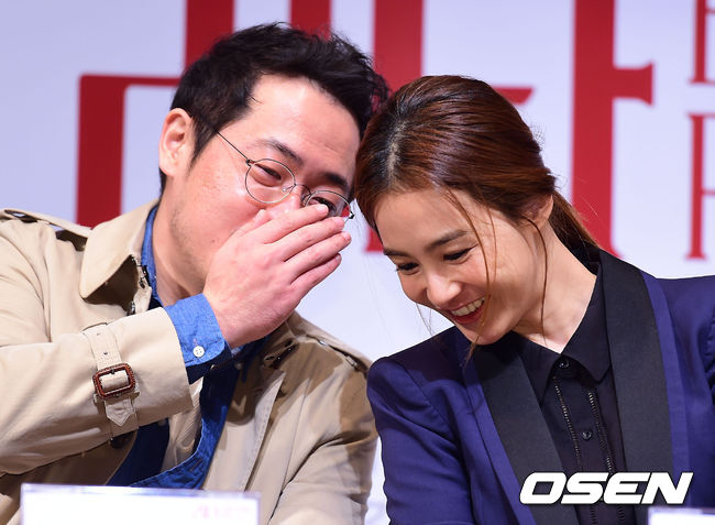 배우 강혜정과 황재헌 연출이 14일 오후 서울 대학로 대명문화공장에서 진행된 연극 리타 제작발표회에서 이야기를 나누고 있다.