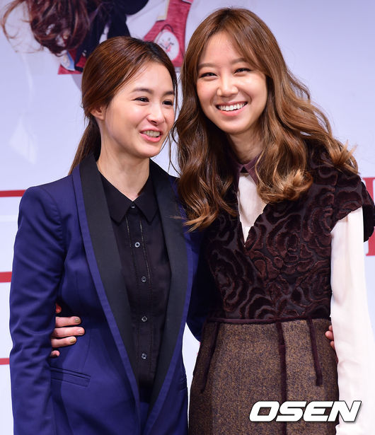 배우 강혜정과 공효진이 14일 오후 서울 대학로 대명문화공장에서 진행된 연극 리타 제작발표회에서 포토타임을 하고 있다.