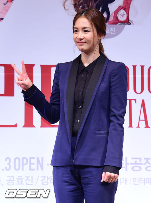 배우 강혜정이 14일 오후 서울 대학로 대명문화공장에서 진행된 연극 리타 제작발표회에서 포토타임을 하고 있다.
