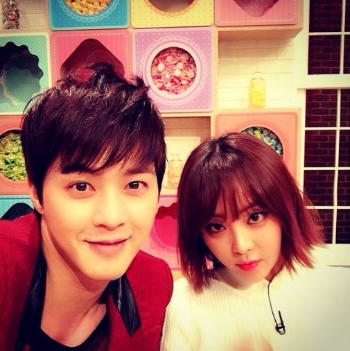 [OSEN=조민희 인턴기자] 배우 김지훈과 브라운 아이드 걸스 나르샤의 녹화 인증샷이 공개됐다.