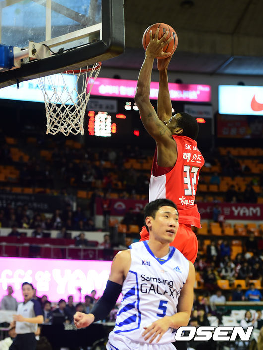 1쿼터 SK 헤인즈가 투핸드 덩크를 성공시키고 있다.