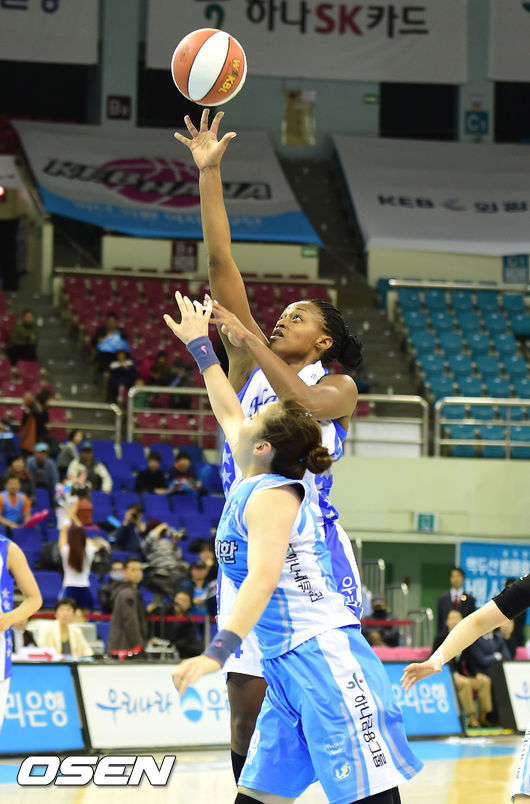 14일 오후 경기 부천시 부천실내체육관에서 KB국민은행 2014-2015 여자프로농구 부천 하나외환과 춘천 우리은행 경기가 진행됐다.