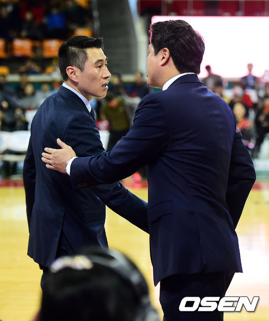 경기후 삼성 이상민 감독과 SK 문경은 감독이 인사를 나누고 있다. /jpnews@osen.co.kr