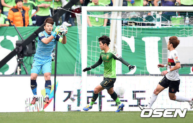 전반 전북 골키퍼 권순태가 공을 잡고 있다.
