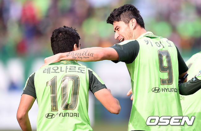 지속적으로 골을 노린 전북은 전반 24분 페널티킥 기회서 포항의 골망을 흔들었다. 키커로 나선 레오나르도가 슈팅을 하지 않고 살짝 내준 공을 뒤에서 쇄도한 카이오가 왼발 슈팅으로 연결해 선제골을 넣은 것. 도움 1개를 추가한 레오나르도는 이명주(알 아인)를 제치고 도움 1위로 올라설 수 있었다.