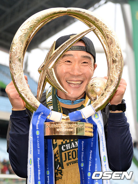 시상식에서 전북 최은성 코치가 우승 트로피를 들고 세리머니를 펼치고 있다. /sunday@osen.co.kr