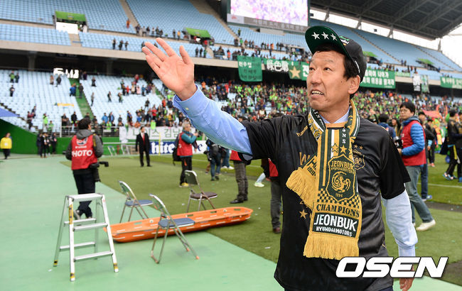 시상식에서 전북 최강희 감독이 서포터스를 향해 손인사를 하고 있다. /sunday@osen.co.kr