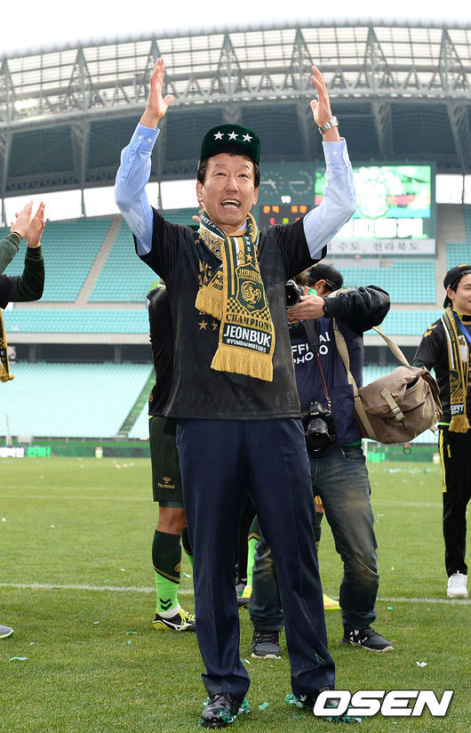 시상식에서 전북 최강희 감독이 서포터스 앞에서 환호하고 있다. /sunday@osen.co.kr