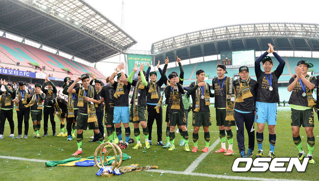 시상식에서 전북 선수들이 서포터스 앞에서 환호하고 있다. /sunday@osen.co.kr