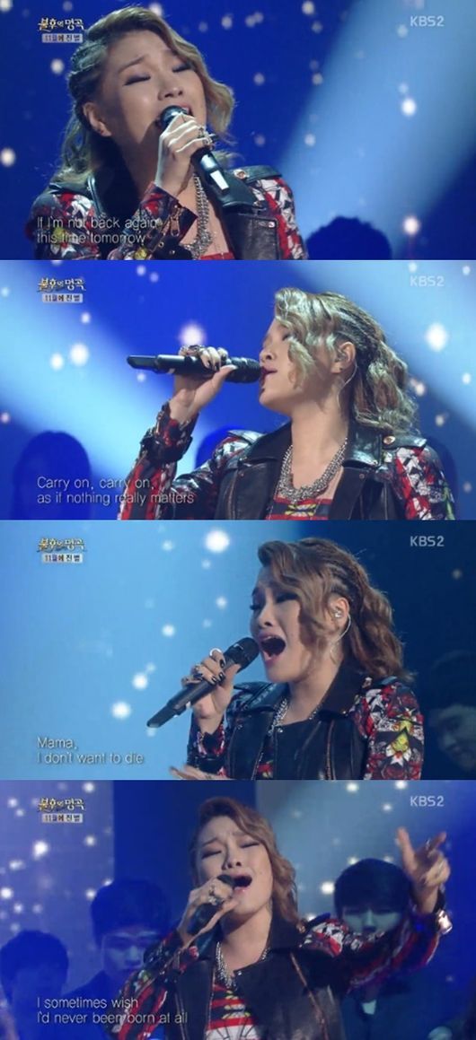 손승연은 15일 방송된 KBS 2TV 예능프로그램 ‘불후의 명곡 전설을 노래하다’에서 퀸의 ‘보헤미안 랩소디’를 선곡했다. 손승연은 “프레디 머큐리의 목소리를 듣지 못하는 게 안타깝다. 원곡의 구성을 바꾸지는 않고, 네 가지의 구성에 랩을 추가했다”고 말했다.