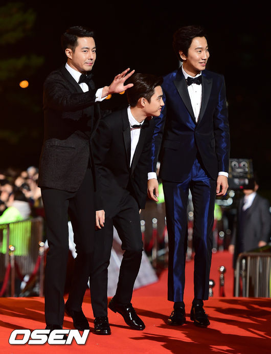 조인성 도경수 이광수가 레드카펫을 밟고 있다.