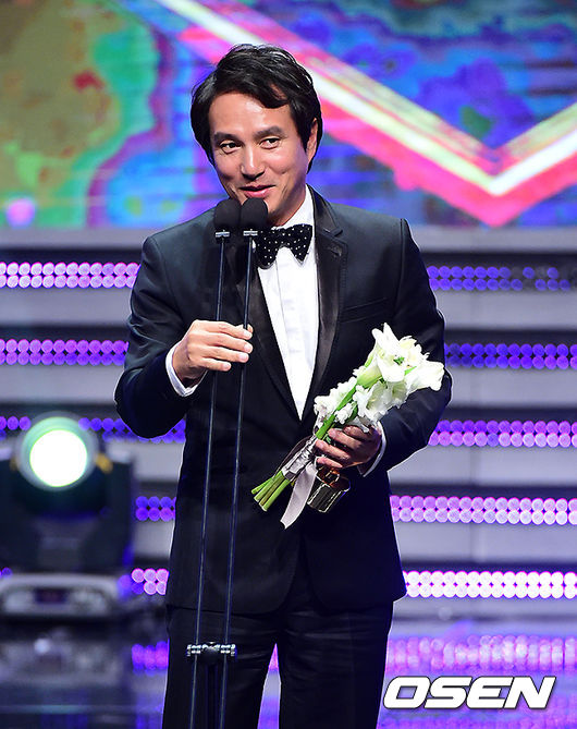 이날 조인성은 대상의 영예를 품에 안았다. 장편 최우수상을 수상한 배우 조재현이 소감을 말하고 있다.