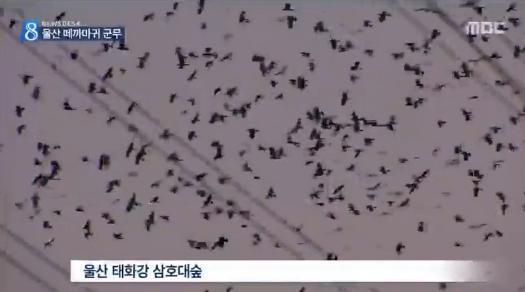 MBC는 울산 떼까마귀 영상을 공개했다. 지난 13일 울산 태화강에 몰려든 떼까마귀 무리가 비행을 하는 모습을 카메라에 담은 것.