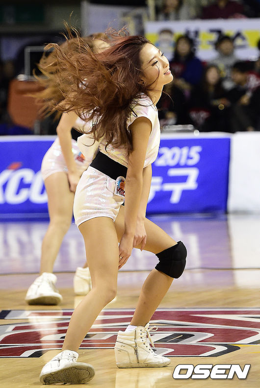 16일 오후 안양실내체육관에서 열린 안양 KGC 와 KT 소닉붐의 경기, 2쿼터 종료후 치어리더가 멋진 공연을 펼치고 있다.