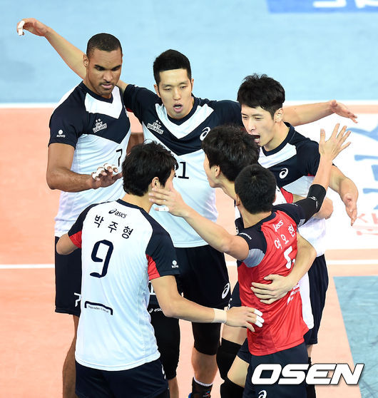 16일 오후 충남 천안 유관순체육관에서 2014-2015 NH농협 V-리그 현대캐피탈과 삼성화재의 경기가 열렸다.
