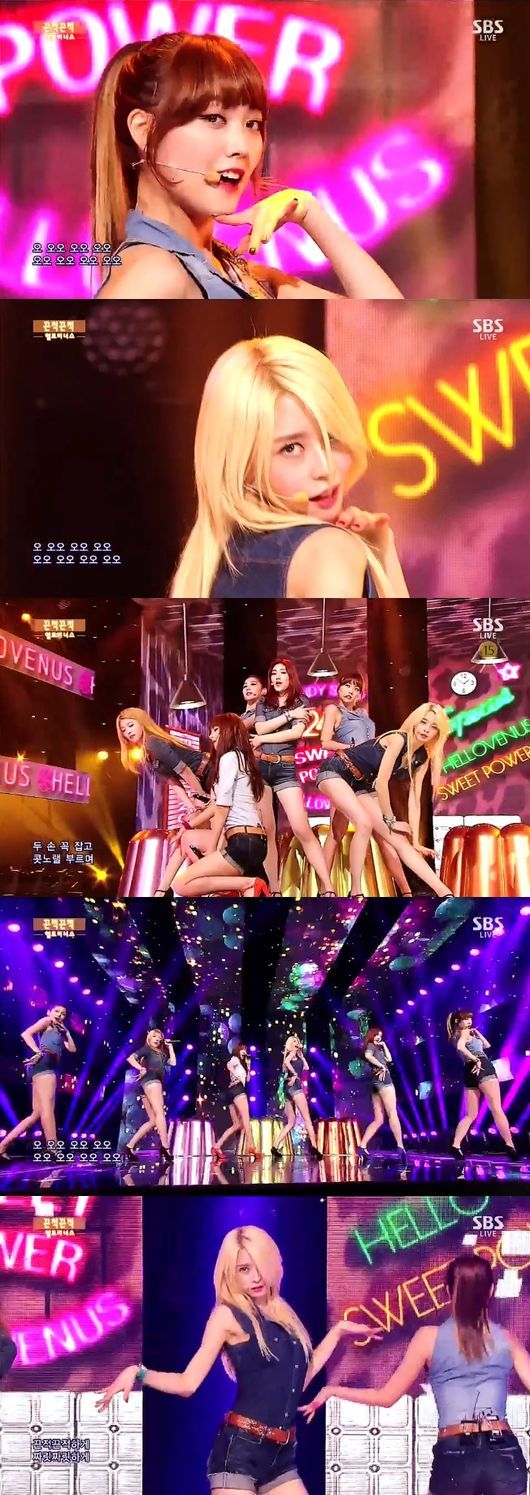 헬로비너스는 16일 오후 방송된 SBS 가요프로그램 ‘인기가요’에서 신곡 ‘끈적끈적’ 무대를 선보였다.