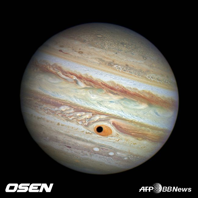 최근 미국항공우주국(NASA)에 따르면 지난 4월 허블망원경이 목성 표면의 대적점(Great Red Spot: 목성의 남위 20°부근 목성 표면의 적갈색 소용돌이)을 관찰하던 중 대적점 위에 가니메데의 그림자가 떠오르는 기묘한 장면을 포착했다.