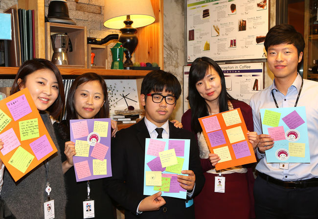 지난 14일 LG유플러스 신입사원들은 중구 남대문로 본사 사옥에 청각장애 청소년 김민준(만 14세, 가명)군과 김민준군의 어머니를 초청해 준비한 응원 편지와 방한용품을 전달하고 담소를 나눴다.