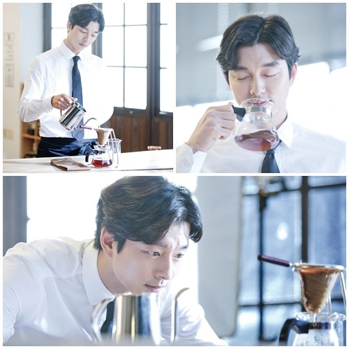 17일 공개된 사진에서 바리스타가 된 공유의 모습은 사뭇 진지하다. 화이트 셔츠를 입은 채 직접 로스팅 한 원두를 집중하여 핸드 드립하는 공유의 모습은 현장에서 지켜보던 스태프들 마저 숨죽이게 만들었다고. 직접 내린 커피의 향을 음미하는 모습부터 커피를 내리면서 지켜보는 공유의 감미로운 눈빛은 지켜보는 여심을 흔들 만 하다.