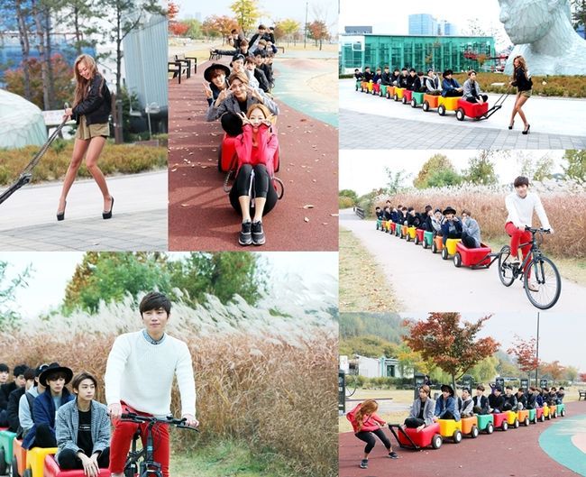 효린, 케이윌, 소유는 수레를 끌어보려고 안간힘을 쓰지만 뜻대로 되지 않자 연습생들을 향해 단호한 눈빛을 보내고 있어 웃음을 자아내고 있다. 각각 '효수레', '케수레', '소수레'라는 애칭까지 붙인 수레에 올라단 12명의 연습생들은 수려한 외모와 귀여운 포즈, 특유의 재치있는 끼를 드러내고 있다.
