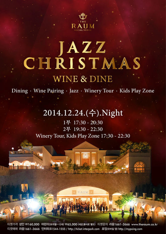 강남구 역삼동에 위치한 국내 최초 복합문화공간 라움아트센터(www.theraum.co.kr)는 12월 24일 크리스마스 디너, '재즈 크리스마스, 와인 앤 다인'을 개최한다.