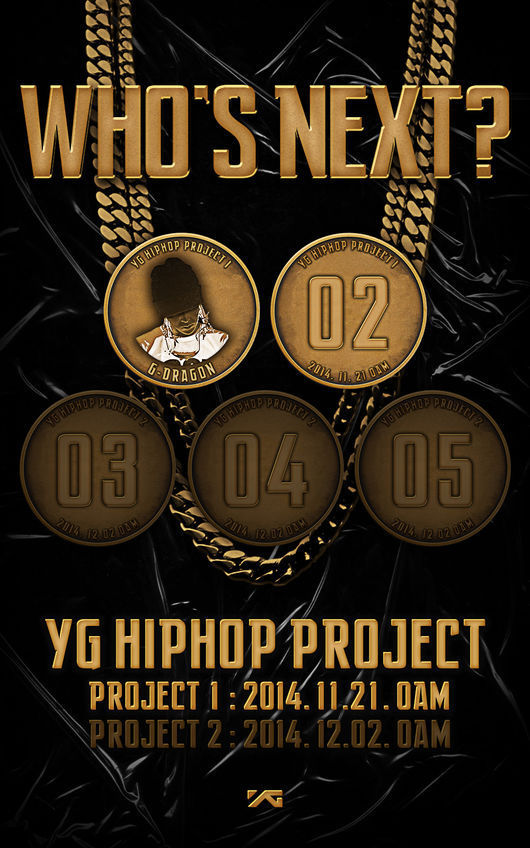 YG는 17일 0시 공식 블로그를 통해 ‘YG 힙합 프로젝트(YG HIPHOP PROJECT)’의 두 번째 티저 포스터를 공개했다. 이를 통해 밝혀진 것은 2인 유닛의 첫 번째 멤버가 지드래곤이라는 것. 포스터 안에는 ‘01’이 써있던 동전에 지드래곤의 모습이 그려져 있다.
