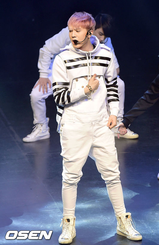 17일 오후 서울 광진구 악스코리아홀에서 열린 그룹 갓세븐의 첫 정규앨범 '아이덴티티(Identity)' 의 쇼케이스에서 갓세븐 유겸이 멋진 무대를 펼치고 있다.