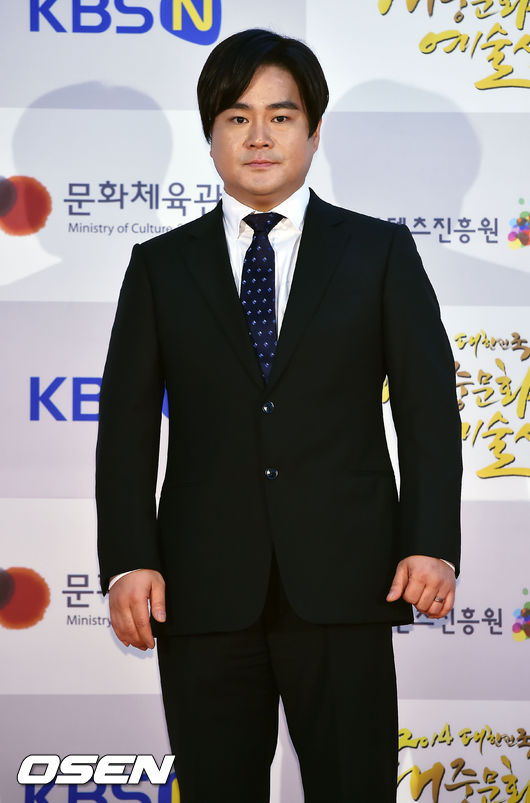 17일 오후 서울시 종로구 연건동 홍익대 대학로 아트센터 대강당에서 열린 '2014 대한민국 대중문화예술상'에서 유영진이 포토월에서 포즈를 취하고 있다.