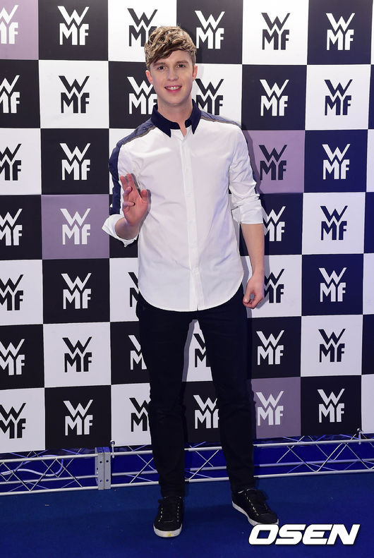 17일 오후 서울 반포동 JW 메리어트 호텔에서 열린 독일 키친웨어 브랜드 WMF의 패션쇼 행사에서 줄리안 퀸타르트가 포토타임을 갖고 있다.