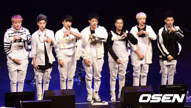 17일 오후 서울 광진구 악스코리아홀에서 열린 그룹 갓세븐의 첫 정규앨범 '아이덴티티(Identity)' 의 쇼케이스에서 갓세븐이 포토타임을 갖고 있다.